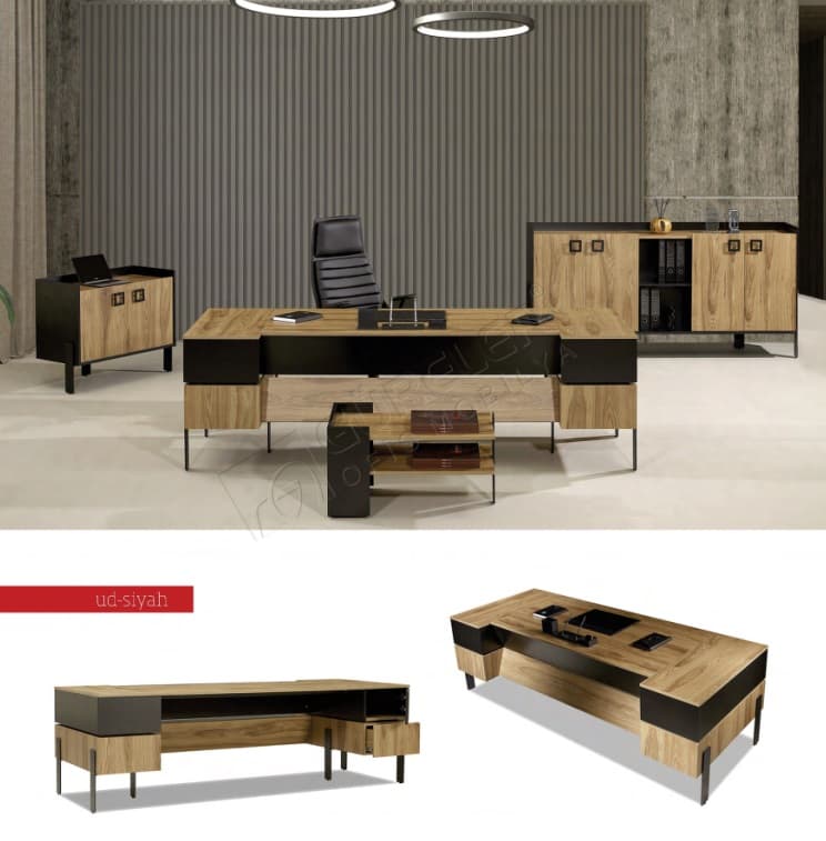Ud Siyah ofis masa takımı, zarif siyah detaylarla modern ofis dekorasyonunuza kusursuz bir uyum sağlar. Şıklığı ve işlevselliği bir araya getiren bu takım, ofisinizin prestijini yükseltmek için ideal bir seçimdir.