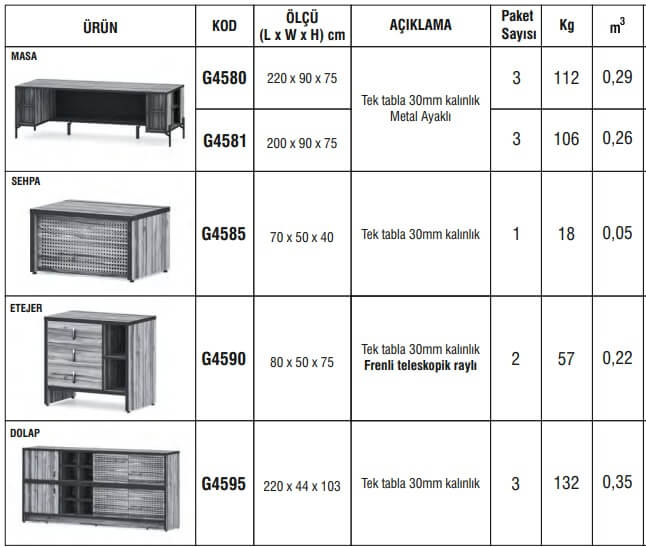 - Malzeme: 30 mm kalınlıkta tabla ile dayanıklı ve estetik tasarım.