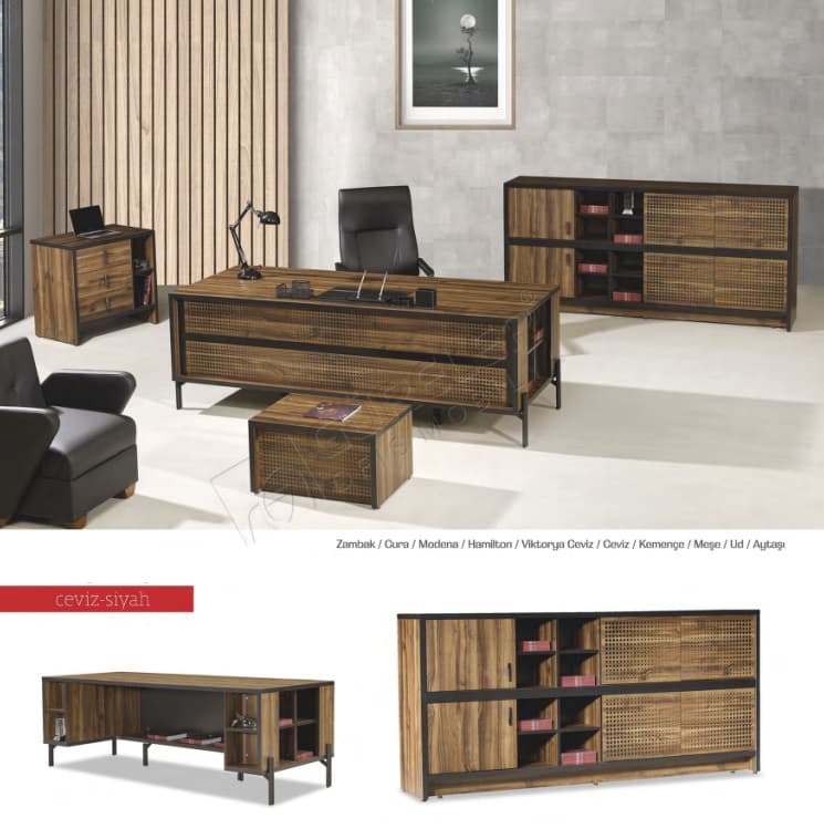 Ofisinizin ihtiyaçlarına uygun tasarlanan bu yönetici masa takımı, şıklığı ve işlevselliği bir arada sunuyor. Geniş depolama alanları ve zarif tasarımıyla öne çıkan takım, çalışma alanınıza profesyonel bir dokunuş katar. Farklı ölçü ve renk seçenekleri ile her dekorasyon tarzına uyum sağlar.