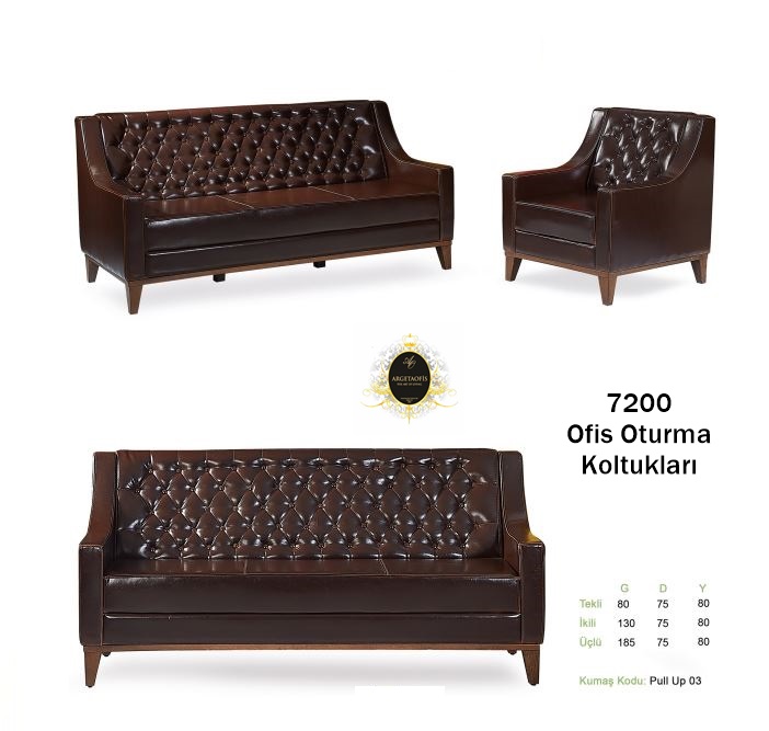 7200 Büro Koltuk Grupları , 2 adet tekli ve 1 adet 3’lü koltuktan oluşan konforlu bir takımdır. Bu mobilya seti, ofisinizin prestijini arttırırken, dileyenler için 2’li koltuk seçeneği de sunuyor.